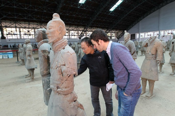 Xiuzhen LI (Qin Museum) and Patrick Quinn (UCL) at the Mausoleum Museum in Shaanxi Province, China
